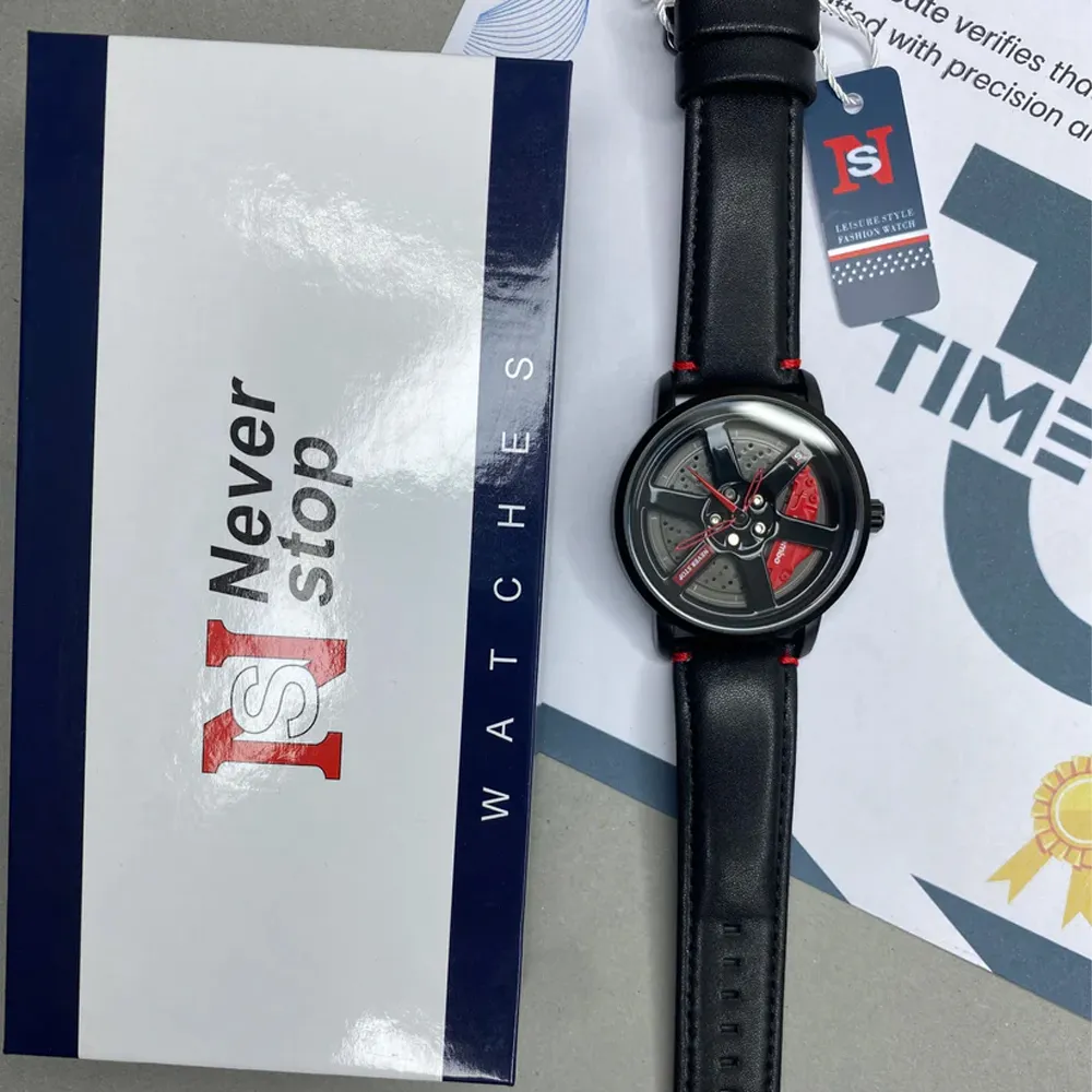 Step into bold innovation with the NS Never Stop Watch, a stunning timepiece that features a one-of-a-kind 360° rotatable wheel dial. Its 44mm round case in metallic finish and smooth leather strap combine to deliver comfort with a powerful fashion statement. Whether you're heading to a casual meetup or looking to add flair to your everyday look, this watch instantly stands out.